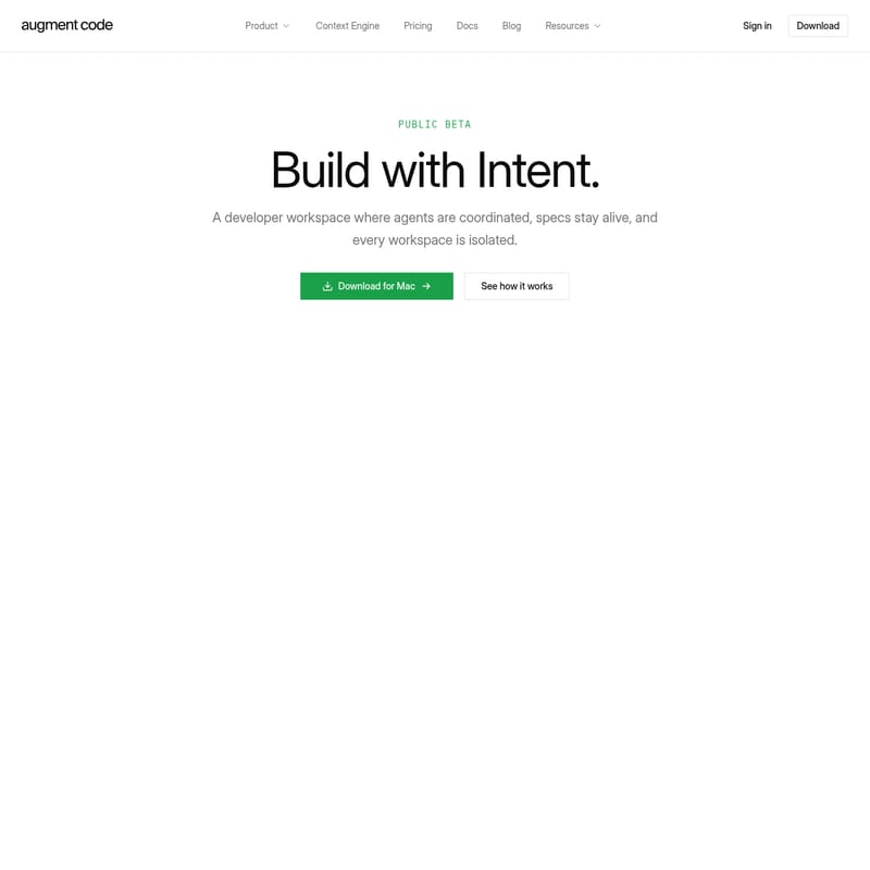 En el panorama actual del desarrollo de software, la coordinación efectiva entre la intención del programador y la ejecución de la IA es fundamental. Intent se presenta como un workspace para desarrolladores diseñado para construir con propósito, donde los agentes se coordinan de forma sistémica, las especificaciones permanecen vivas y cada entorno de trabajo está aislado para garantizar la máxima eficiencia.