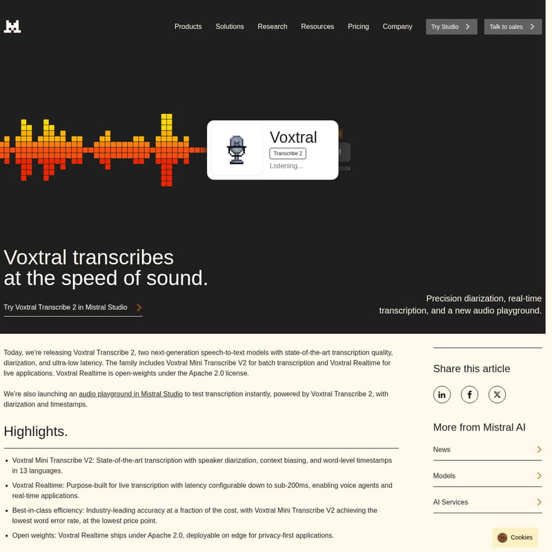 Voxtral Transcribe 2 by Mistral Informations sur le produit