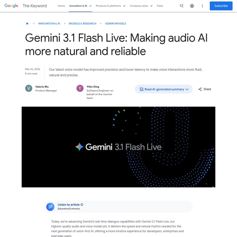 Gemini 3.1 Flash Live Informacje o produkcie