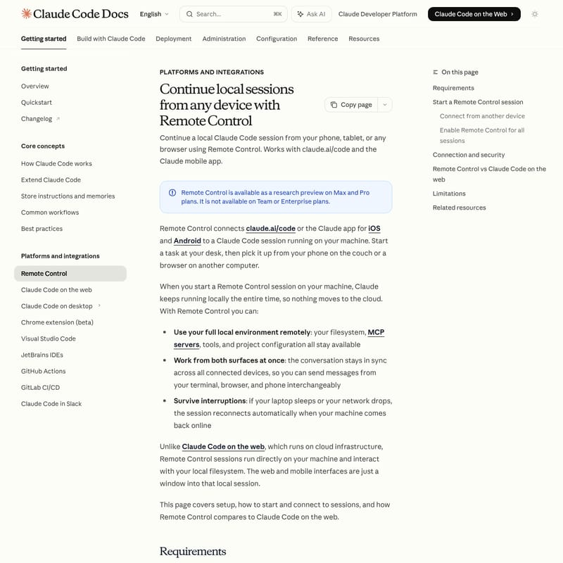 - Multi-Surface Synchronization: The conversation stays perfectly in sync. You can send messages from your terminal, browser, or phone interchangeably during the same Claude Code session.