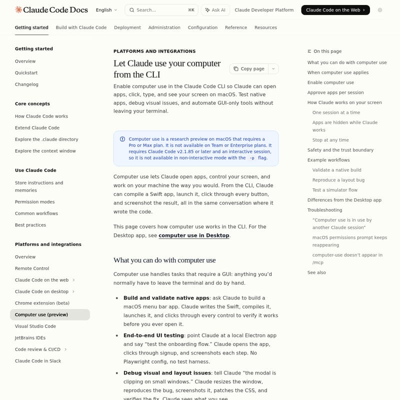 - Native App Interaction: Claude Code can open, control, and screenshot any approved macOS application.