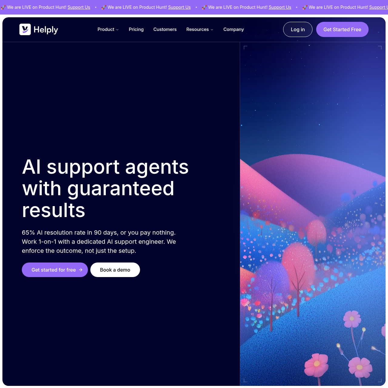 Helply is the only platform that guarantees a 65% resolution rate. This ensures that the AI support agent is not just an expense, but a measurable asset to your customer success strategy.