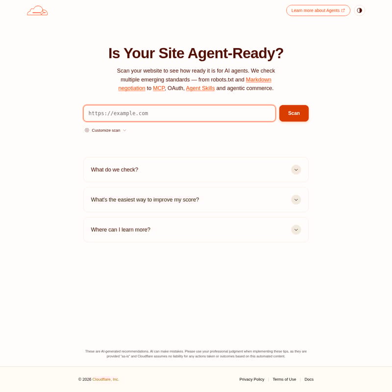 Is Your Site Agent-Ready? by Cloudflare Product Information