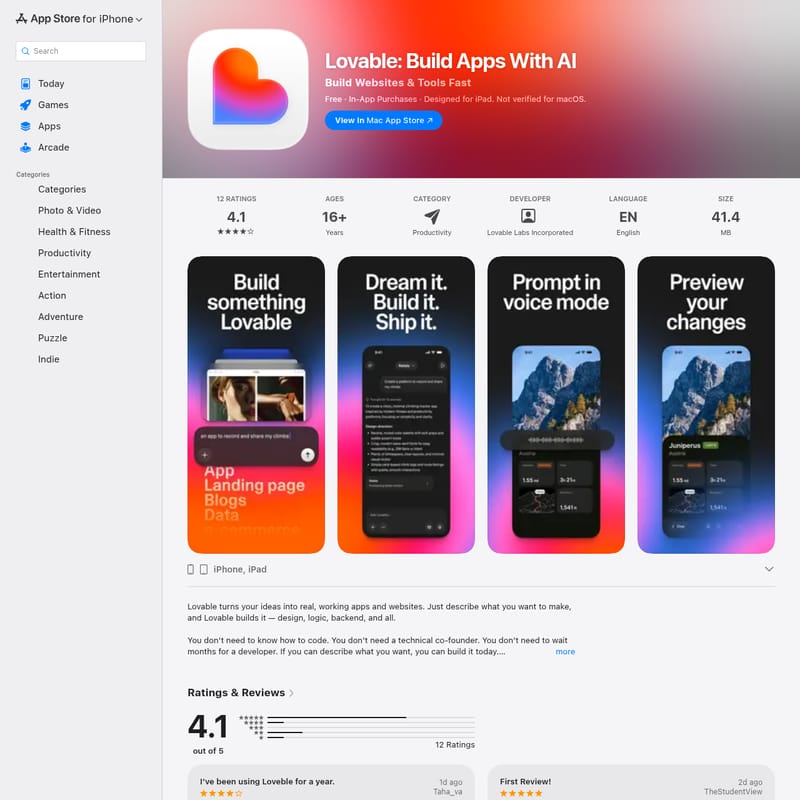 Lovable: Build Apps With AI - The Ultimate AI App and Website Builder for iPhone and iPad
