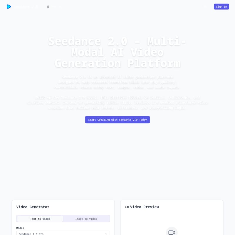 Seedance 2.0: Multi-Modal AI Video Generation Platform for High-Quality Controllable Content