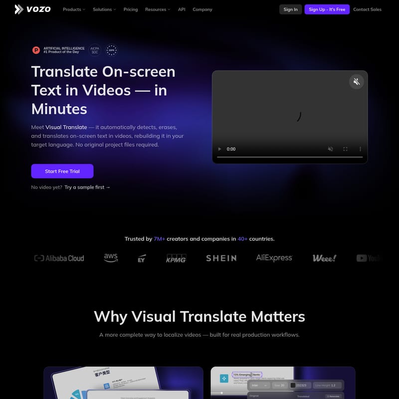 In the era of global content consumption, traditional video localization often falls short by only addressing audio or subtitles. Visual Translate changes the game by offering a more complete way to localize videos. Voted as the #1 Product of the Day, Visual Translate automatically detects, erases, and translates on-screen text in videos, rebuilding the visual layer in your target language within minutes.