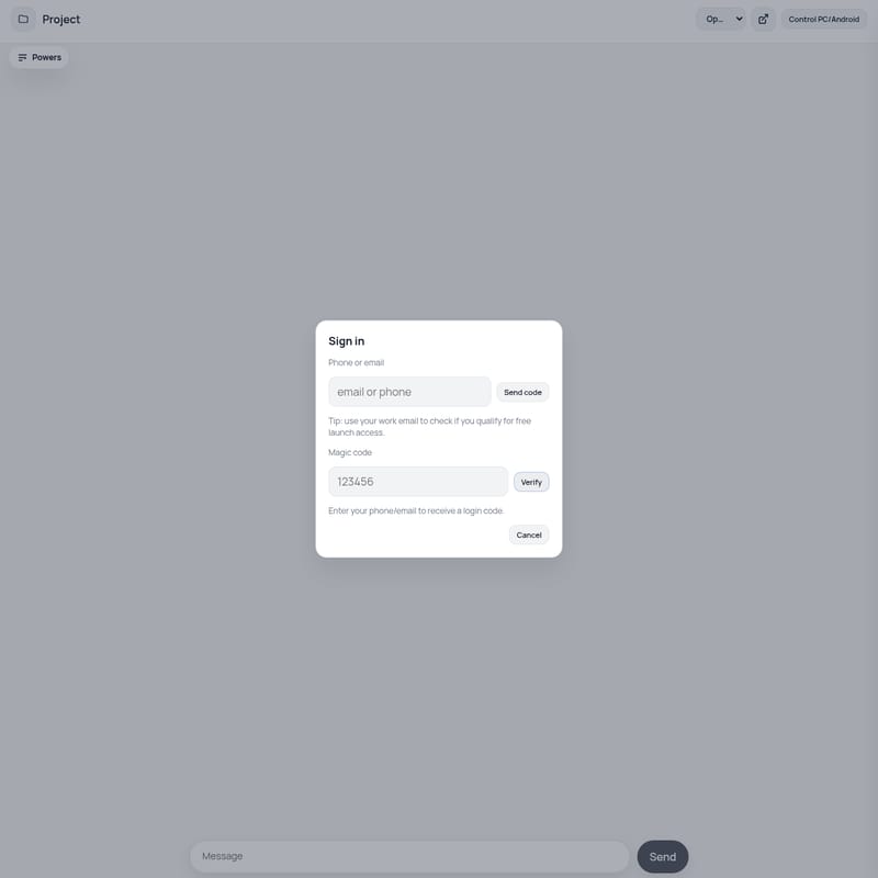 - Нажмите Send code, а затем введите полученный Magic code в поле Verify.